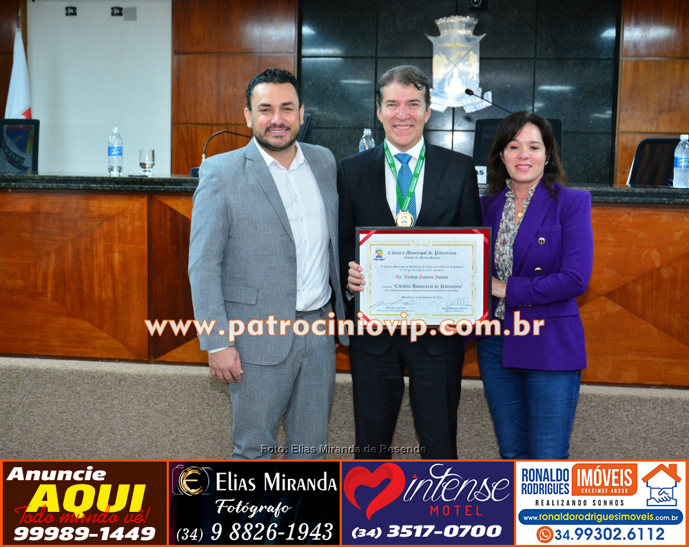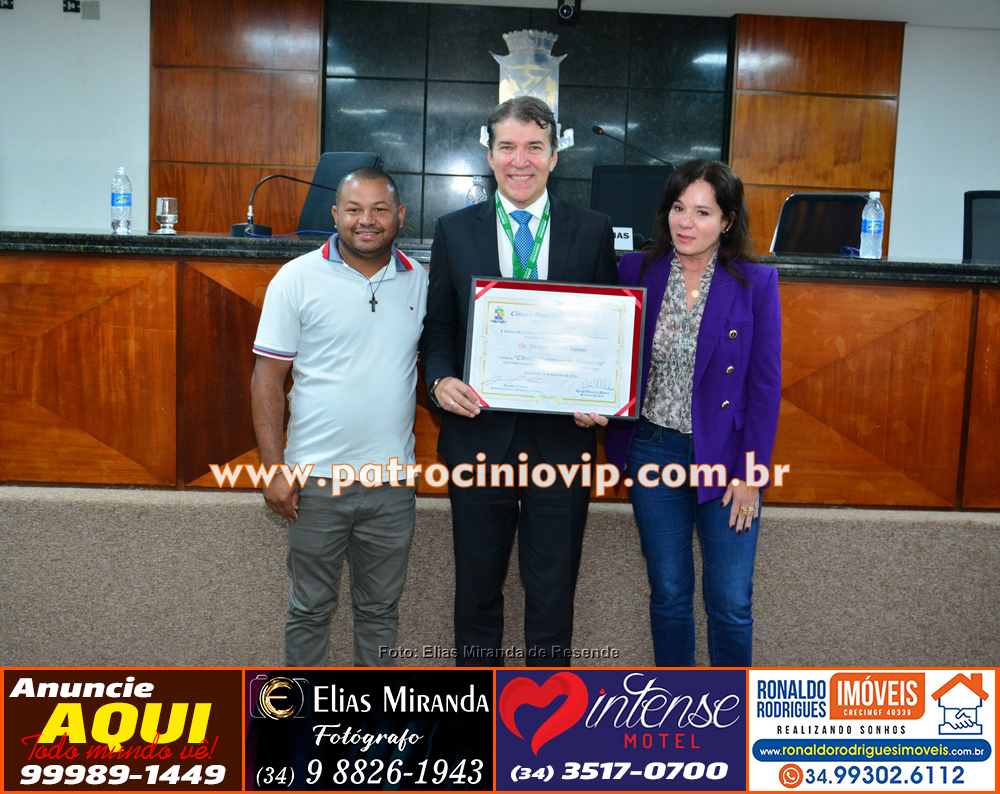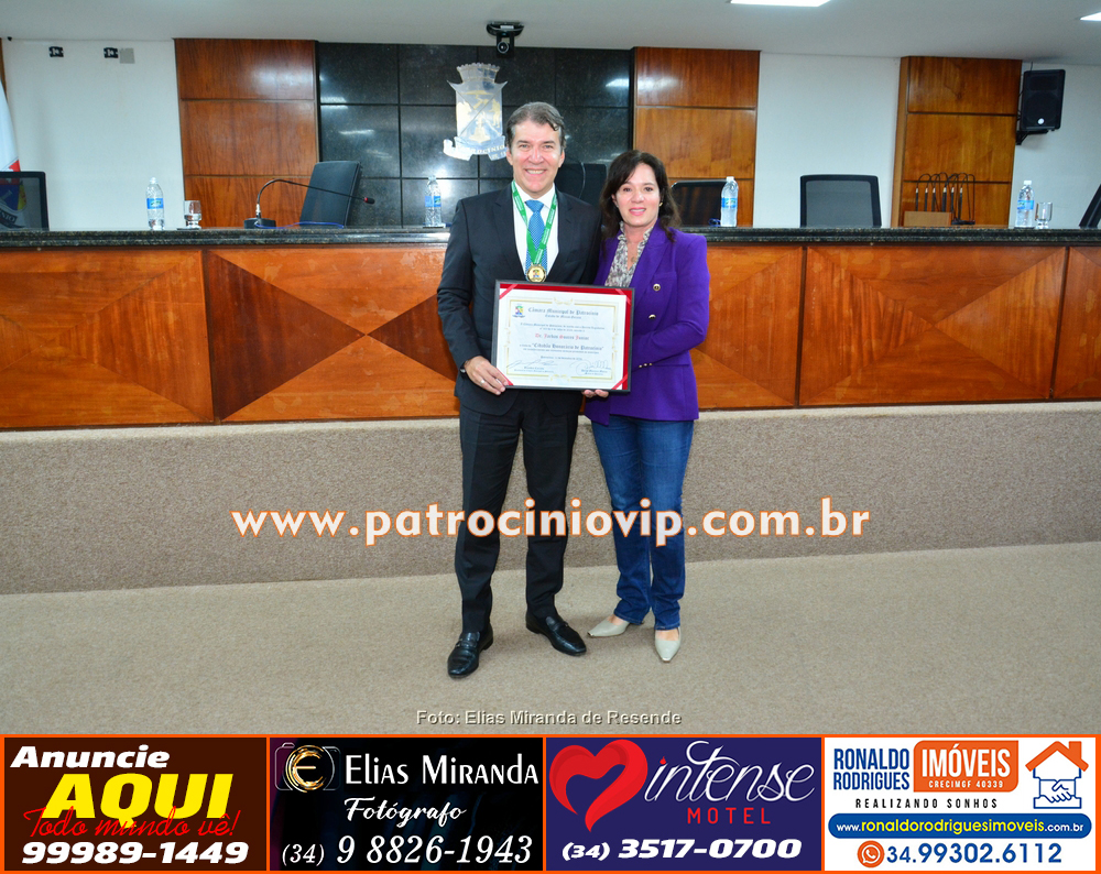 Na manhã desta segunda-feira, 19 de maio, foi realizada, no plenário da Câmara Municipal de Patrocínio, a solenidade de entrega do Título de Cidadão Honorário de Patrocínio ao Excelentíssimo Dr. Jarbas Soares Júnior. A honraria, de grande significado para o município, é de autoria do vereador Leandro Caixeta.