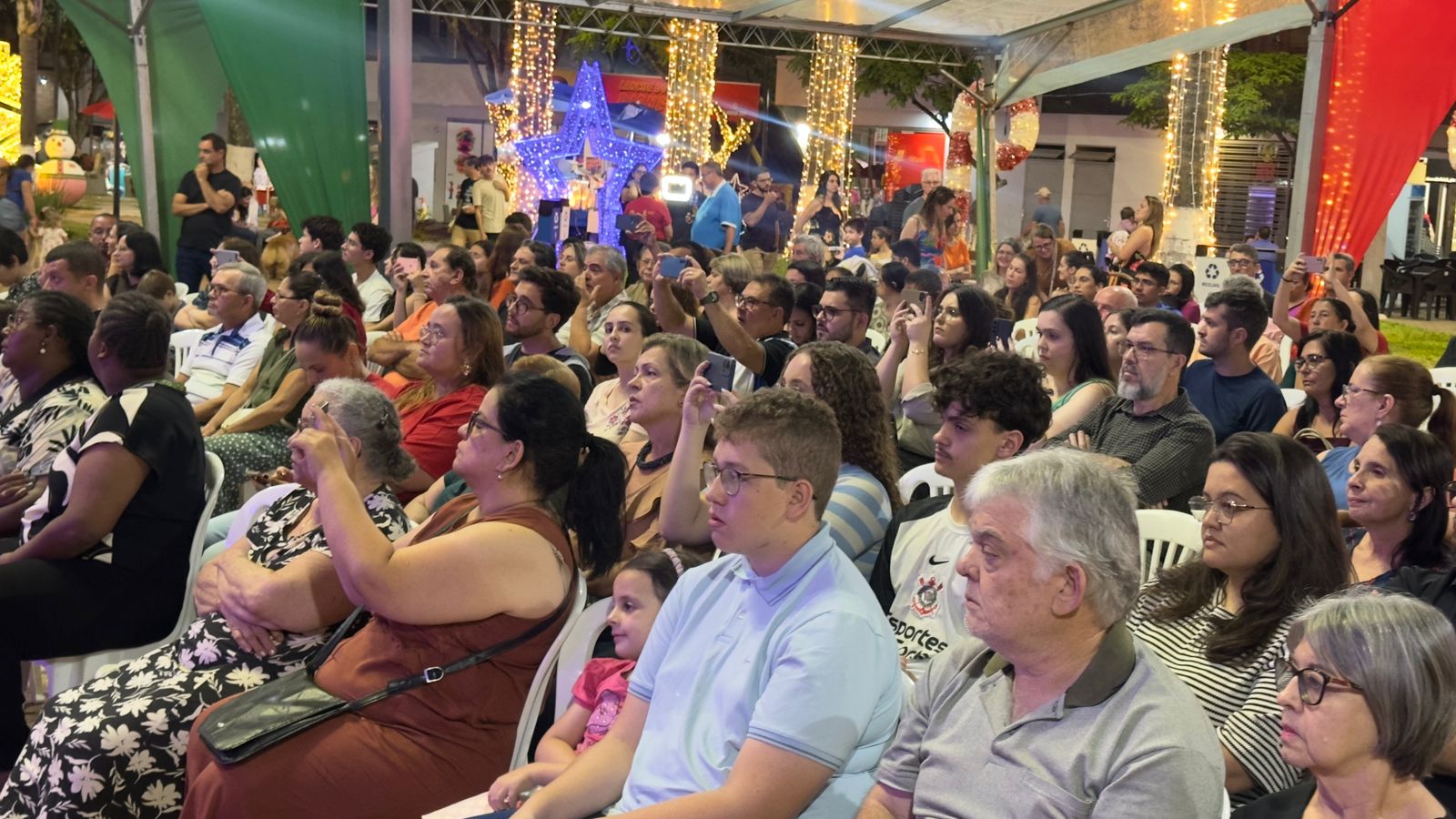 Abrindo a noite, o Coral da Igreja Presbiteriana do Bairro Constantino emocionou ao público com uma apresentação marcada pela harmonia, sensibilidade e mensagens de fé, reforçando o verdadeiro significado do Natal. Em seguida, a Família Reis subiu ao palco e animou a plateia com um show vibrante, reunindo músicas animadas e um repertório diversificado que agradou pessoas de todas as idades.